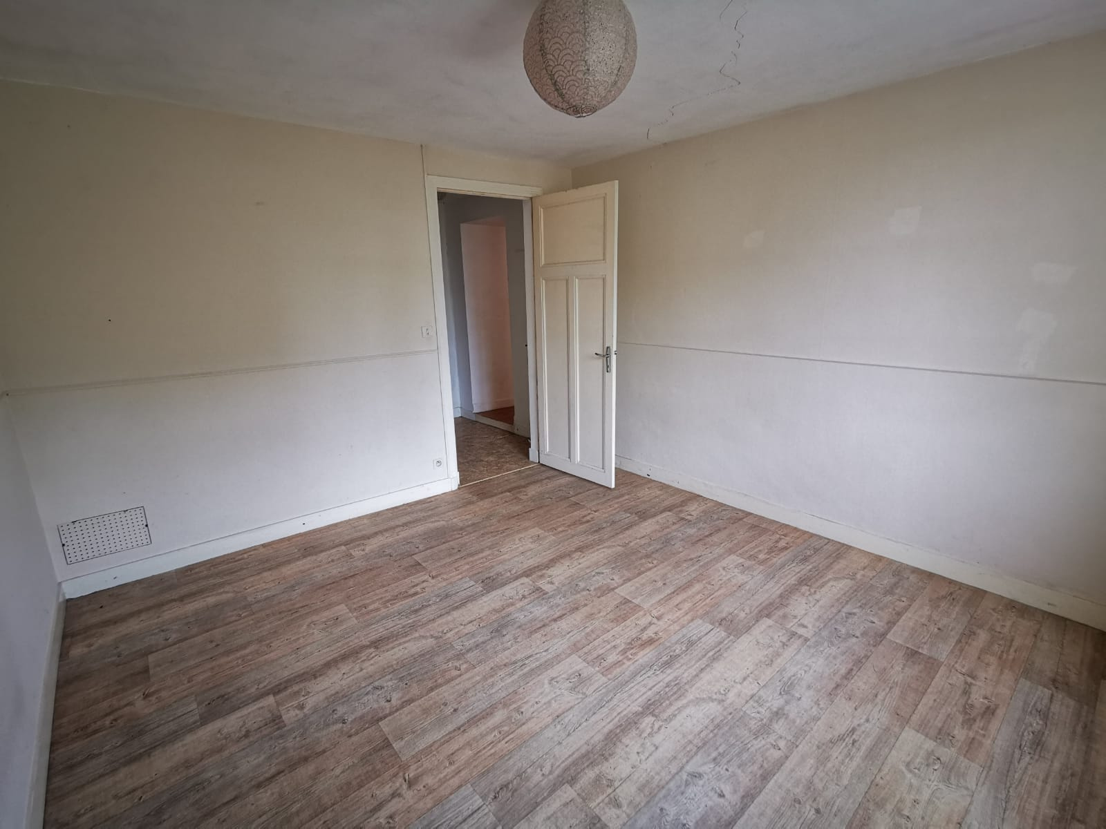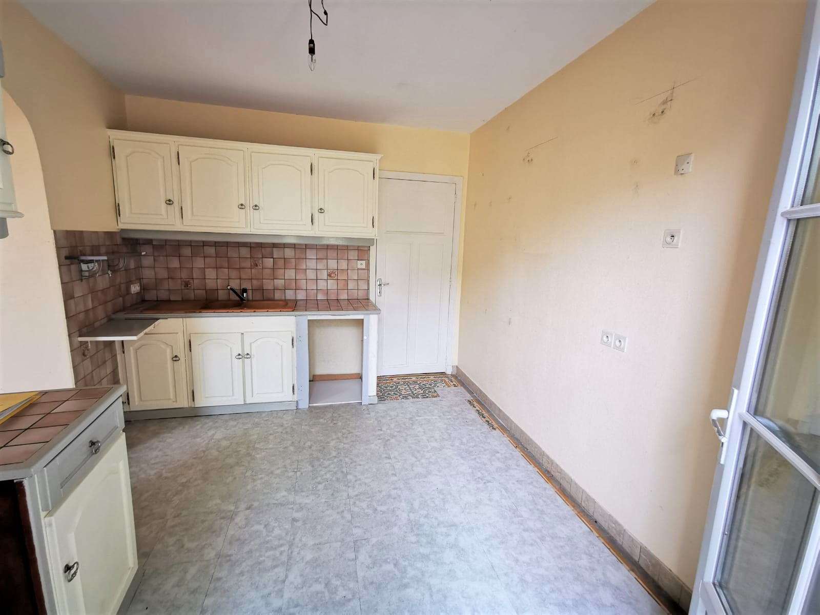 Pas de cheminée, lino, Porte fenetre sur jardin, Exposition : S, Situation : Jardin