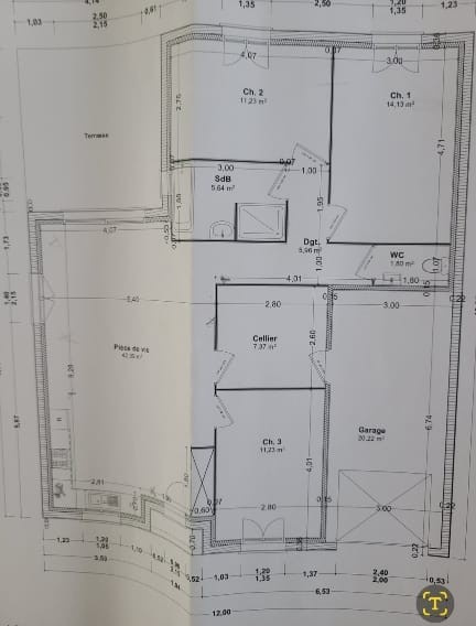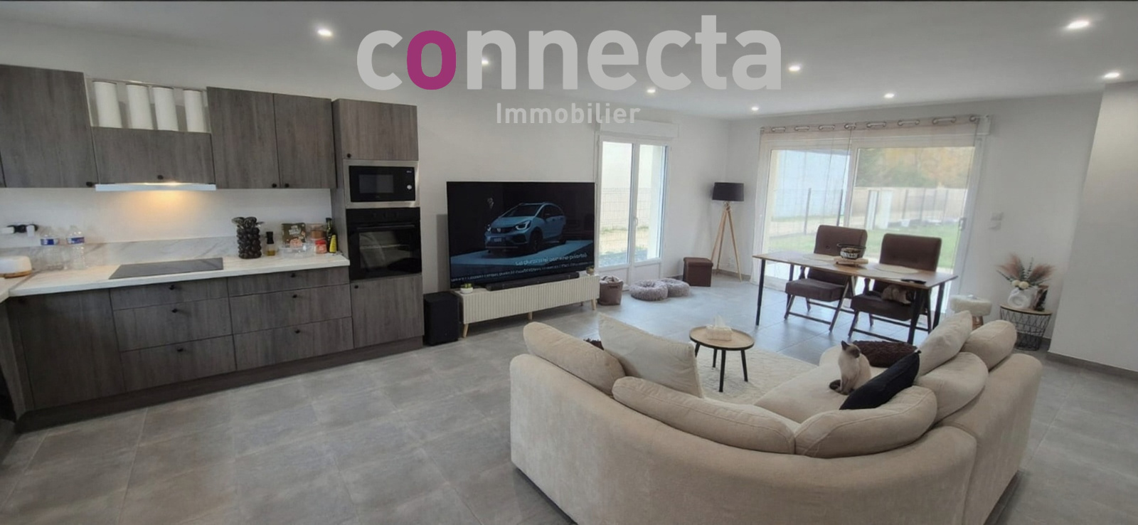 Composé d'une pièce de vie lumineuse et spacieuse avec cuisine ouverte équipée et aménagée, complétée d'un cellier/buanderie donnant accès au garage.