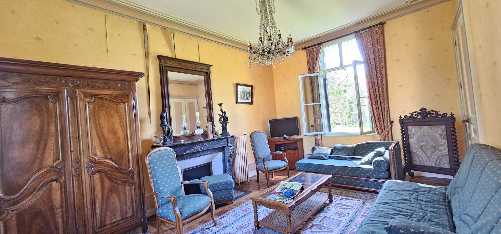 Un salon avec cheminée de 22 m²