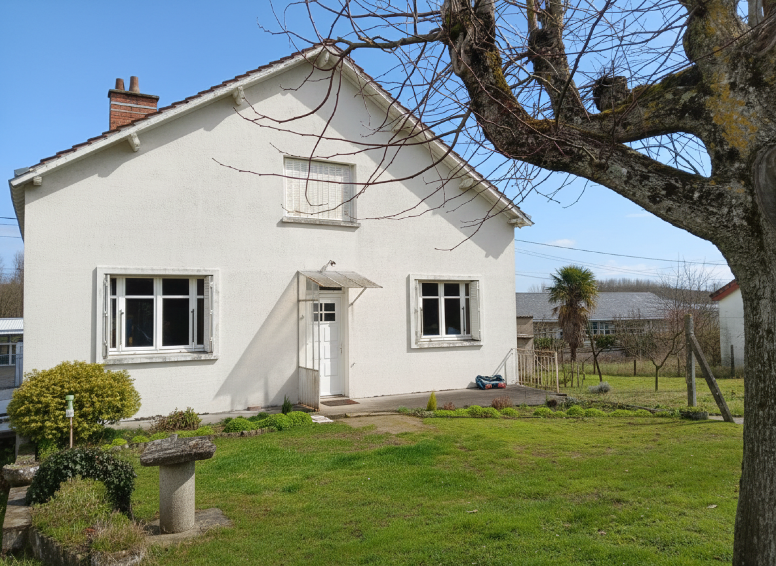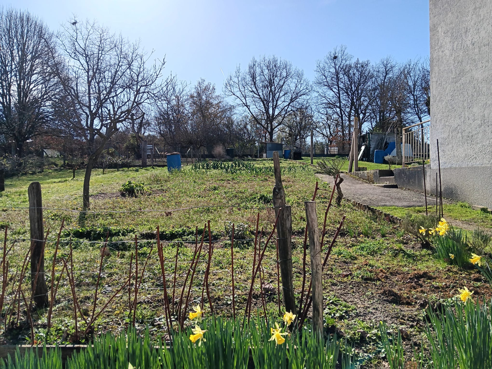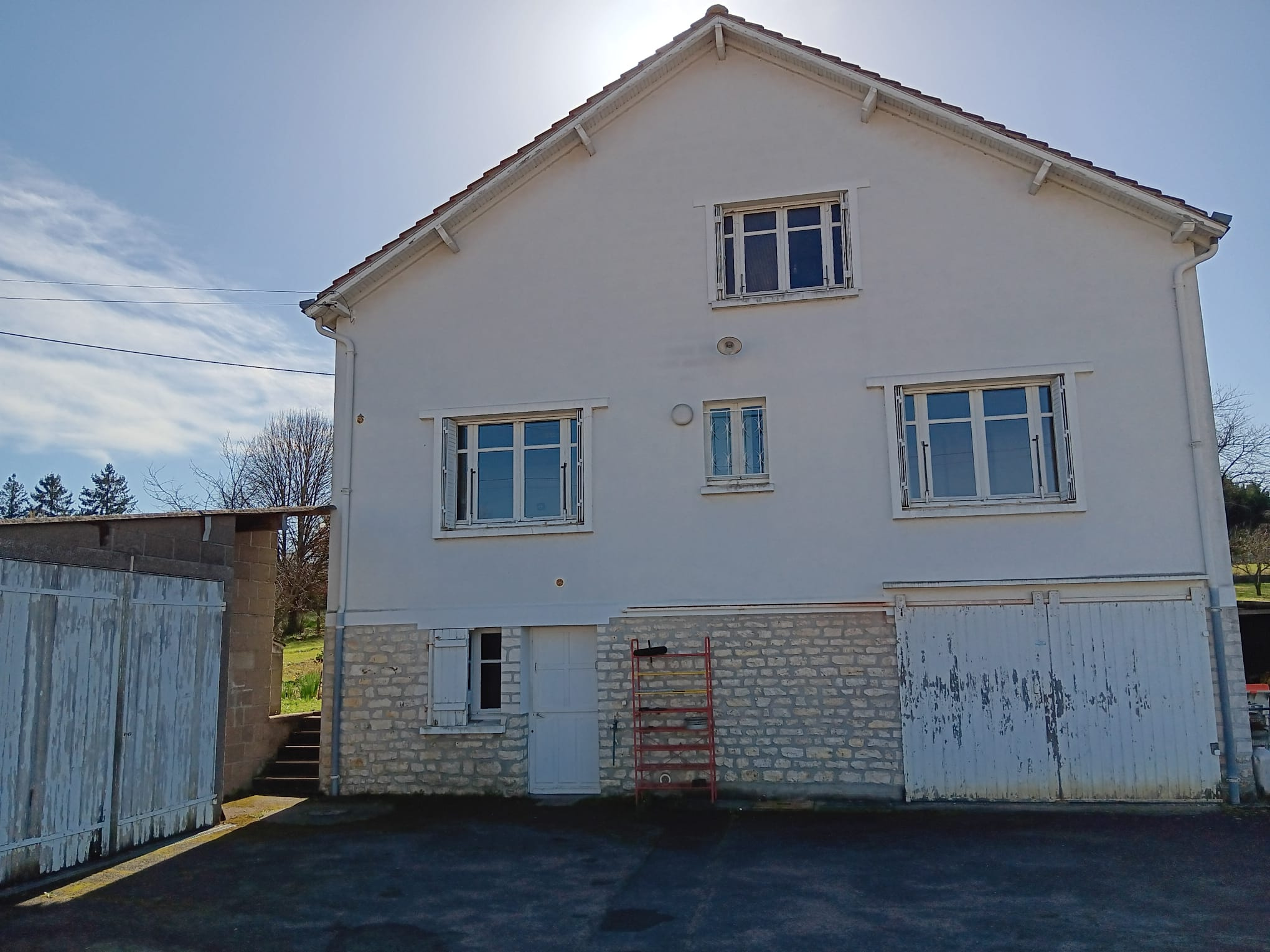 À l’extérieur, profitez d’un grand terrain arboré de 2 357 m², avec puits et garages indépendants.